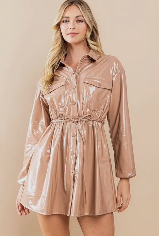 Flowy Tie V Neck Flutter Sleeve Tunic Dress