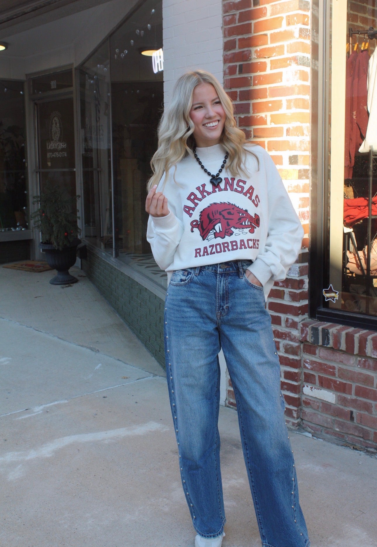 Elevate your game day wardrobe with the AR Reversible Mock Neck! This versatile sweatshirt showcases your Arkansas Hogs pride while providing the comfort and style you crave. Its reversible design means you can switch up your look effortlessly, making it perfect for any occasion. Be ready to cheer on your team in style!