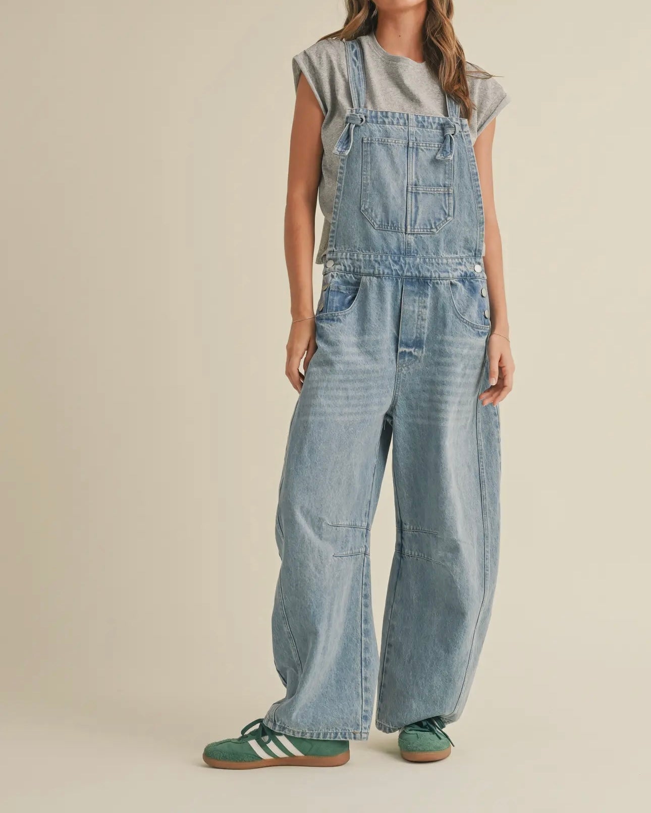 Get ready to rock your style with our Barrel Denim Overalls! These womens overalls are a versatile and comfortable addition to your wardrobe. Made from durable denim, they make the perfect choice for a casual day out. Easy to pair with any top, these overalls will quickly become your go-to for an effortlessly chic look.