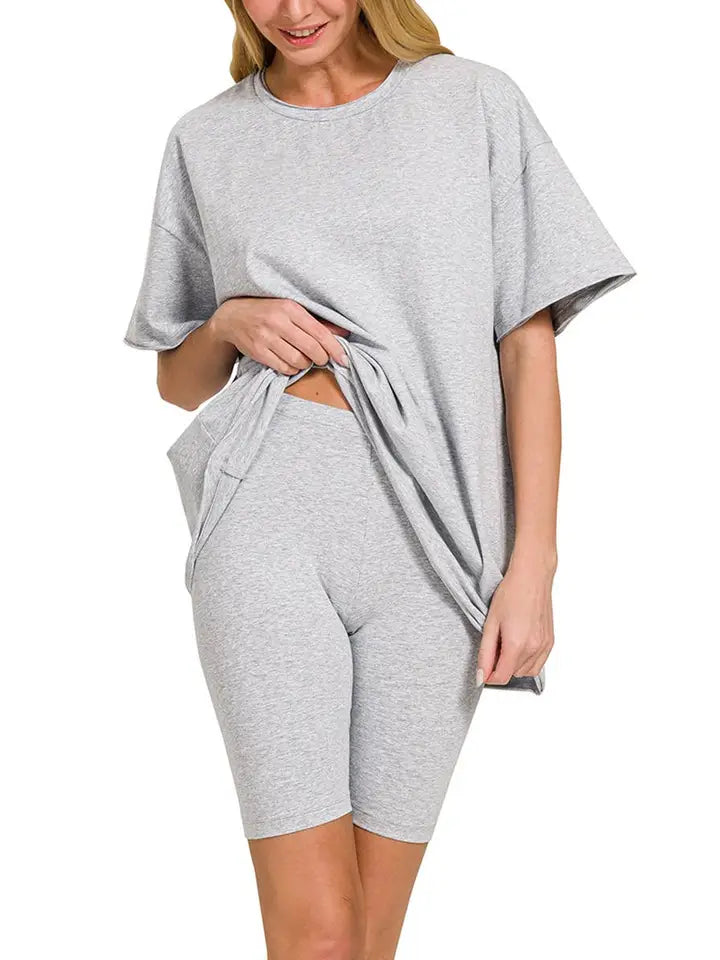 Experience everyday comfort with the Everyday Cotton Tee, crafted from soft, breathable cotton for all-day wear. Its versatile gray shade pairs effortlessly with various outfits, while the relaxed fit ensures ease of movement. Please note, matching shorts are available separately to complete your casual look.