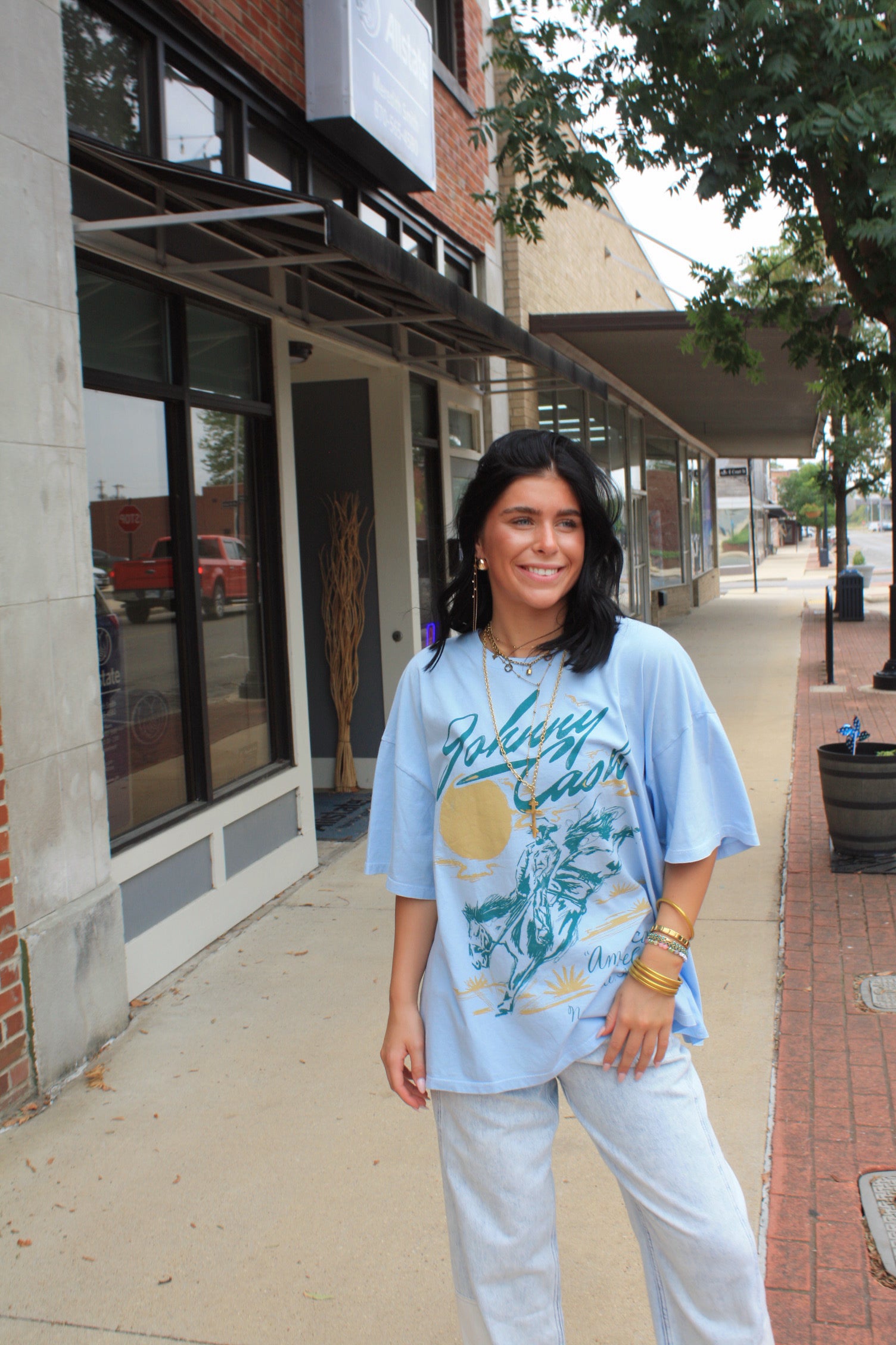 Celebrate the spirit of rebellion with the Johnny Cash American Rebel One Size Tee. Crafted for comfort and style, this versatile tee fits all and showcases iconic imagery that honors the legendary artist’s bold legacy. Perfect for fans who want to wear their attitude proudly, it pairs effortlessly with any casual outfit, making a statement wherever you go. Embrace your inner rebel with this timeless tribute to Johnny Cash.